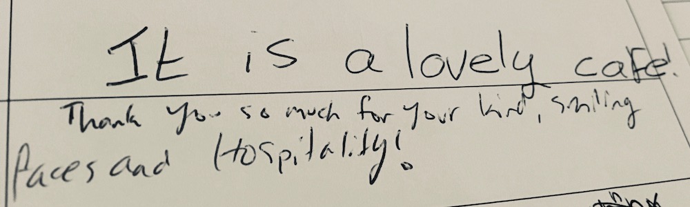Just as it should be, you might say, but I think it’s just amazing that a team of volunteers, from all walks of life (very few from any kind of catering or coffee-shop background), offering their time and talents out of love for the cafe and its community, can offer such a high quality service in such a busy space.